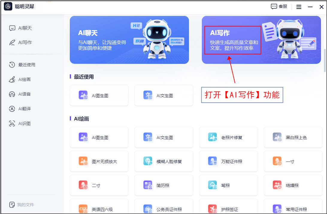 此外,可以或许帮帮用户进行文本创做,从动生成响应的脚本,需要先选择页面中的【AI写做】功能。